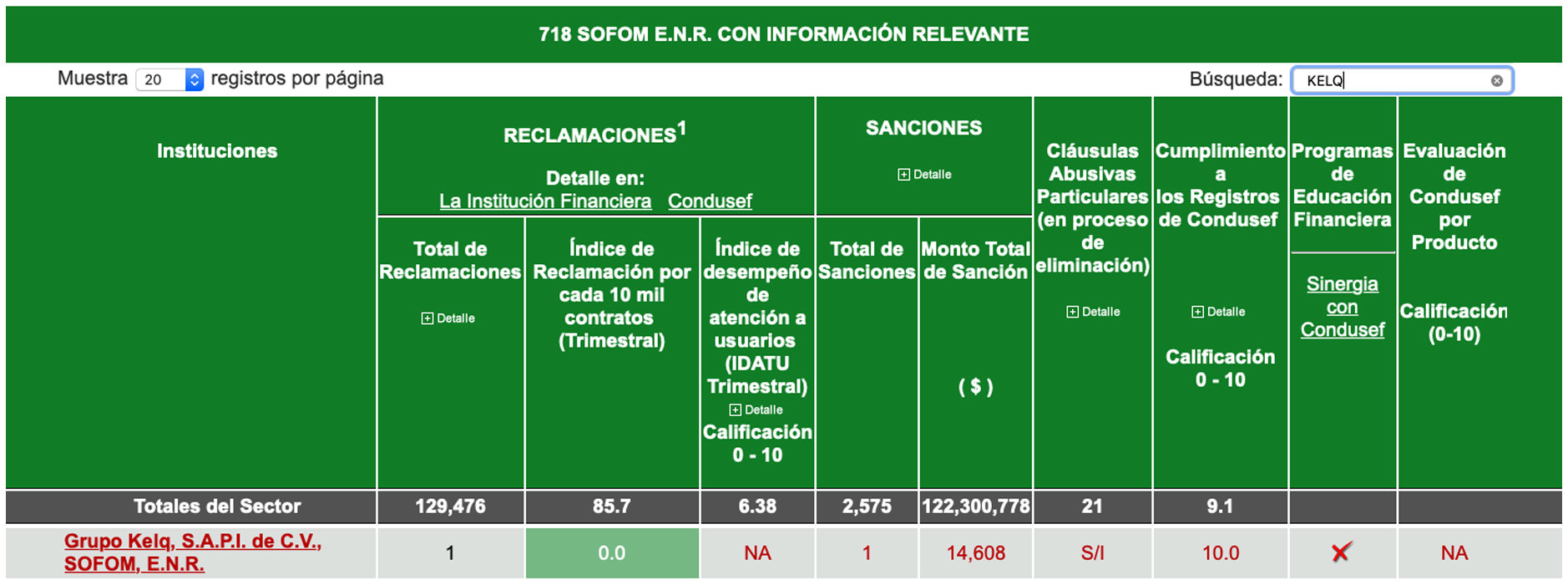 La siguiente información corresponde únicamente a Grupo Kelq, S.A.P.I. de C.V., SOFOM E.N.R.,